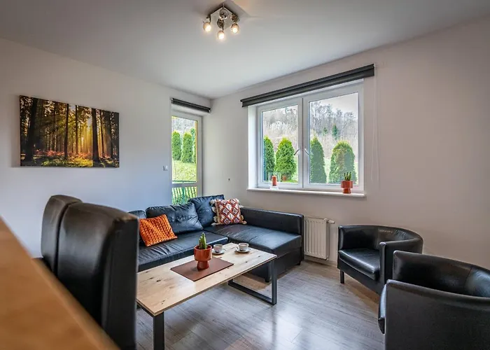 The 1-room Apartament Ustronny Apartment offers a quiet location with views of Beskidy Mountains. Families travelling with children can enjoy snow skiing and hiking while also benefiting from amenities like cots and a baby bath at the apartment.